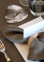 A lovely couple married on a mountain in Verbier. It was important to them that their Swiss and international guests could bring back a memory. So for each person there was a gift on the table, a coaster as a memory of their magic day in the swiss mountains.